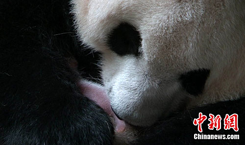 9月10日4时50分,成都大熊猫繁育研究基地20岁的超高龄雌性大熊猫“娅娅”顺利产下了一只大熊猫宝宝。据介绍,这是“娅娅”产下的第13只幼仔。“娅娅”如今的年龄相当于人类的60岁。中新社发 成都大熊猫基地 摄