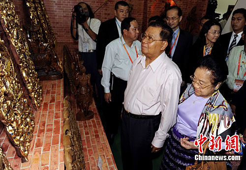 9月10日,正在上海访问的缅甸国家和平与发展委员会主席丹瑞来到世博园缅甸馆参观。中新社记者 刘震 摄