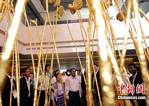 9月10日,正在上海访问的缅甸国家和平与发展委员会主席丹瑞来到世博园中国馆参观。中新社记者 刘震 摄