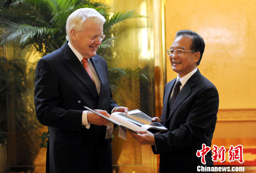 9月13日,中国国务院总理温家宝在天津会见了前来出席2010夏季达沃斯论坛的冰岛总统格里姆松。