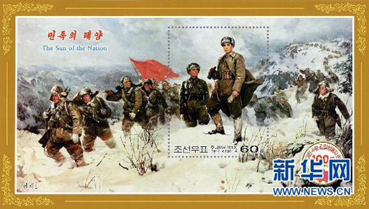 朝鲜国家邮票发行局近日推出几组新邮票,再现了已故国家主席金日成生前的种种革命活动,以迎接即将在2012年到来的金日成诞辰100周年。这是朝鲜中央通讯社9月13日发布的邮票照片。