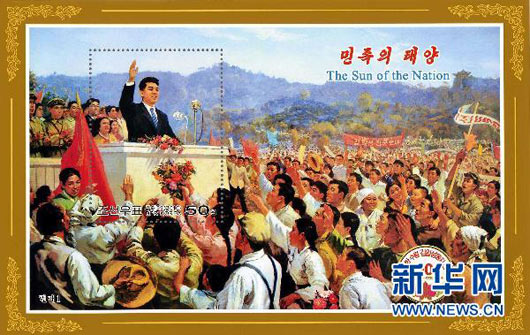 朝鲜国家邮票发行局近日推出几组新邮票,再现了已故国家主席金日成生前的种种革命活动,以迎接即将在2012年到来的金日成诞辰100周年。这是朝鲜中央通讯社9月13日发布的邮票照片。