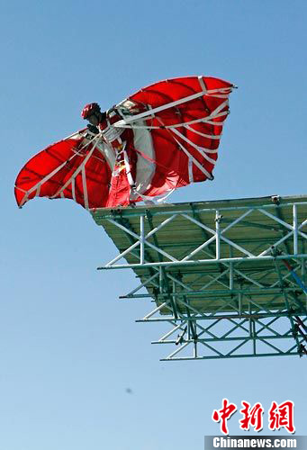 图:广东东莞鸟人跳水大赛为亚运会助威
