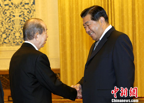 9月15日,中共中央政治局常委、全国政协主席贾庆林在北京人民大会堂会见了台湾奇美文化基金会董事长许文龙一行。