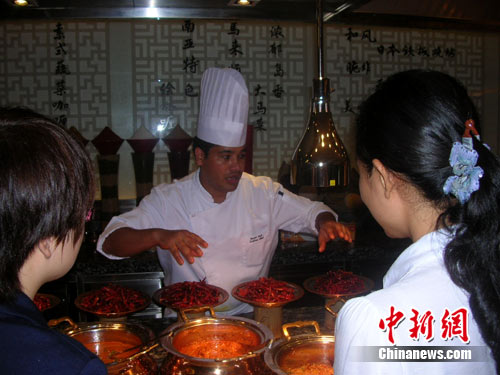 图为印度大厨Sunil Dutt向中外游客介绍印度美食。 中新社发 何斌 摄