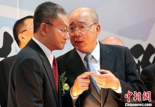 图为邬书林在开幕式中与中国国民党荣誉主席吴伯雄在交谈中。中新社发 刘舒凌 摄