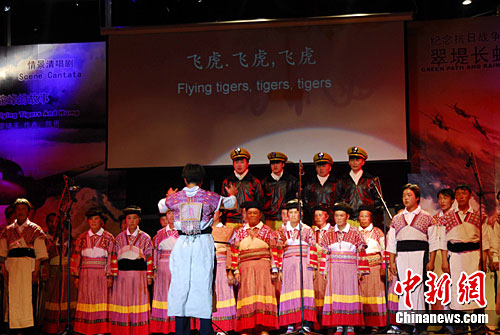9月16日晚,来自中国和美国的25名飞虎队及驼峰航线飞行员的后代在云南昆明观赏了一场名为《翠堤长虹——飞虎/驼峰的故事》的大型清唱剧,并和当地数百名民众一起缅怀了在第二次世界大战中为世界反法西斯战争牺牲的先烈。中新社发 田洪 摄