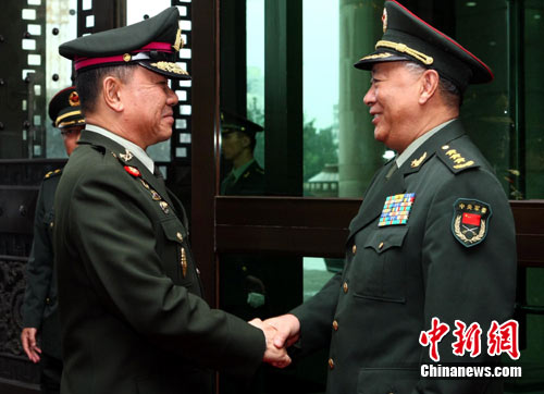 9月17日下午,中央军委委员、总参谋长陈炳德上将,在北京八一大楼会见来访的泰国武装部队最高司令宋吉滴上将,双方就地区形势、两国两军关系及其他共同关心的问题交换了意见。