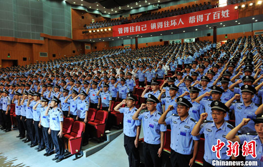 图为重庆警方新招录的民警集体宣誓入职。中新社发 向沈军 摄