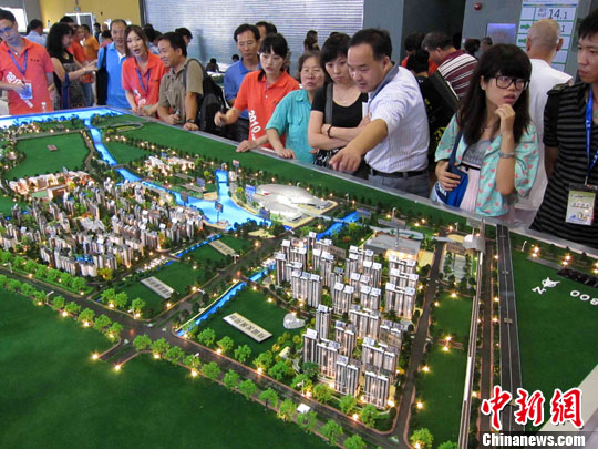 2010年广州秋季房博会9月17日在琶洲会展中心开幕,即将开售的亚运城项目沙盘被市民围得水泄不通。中新社发 柯小军 摄