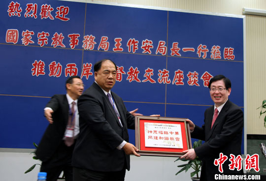 9月17日,正率团在台北拜访各宗教组织的中华宗教文化交流协会负责人、国家宗教事务局局长王作安与台湾地区主流基督教机构100余位代表展开坦诚对谈。