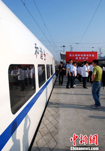 9月20日,中国第二条城际高铁、江西省境内第一条高速铁路——南昌至九江高速铁路(昌九高铁)正式开通运营。中新社发 刘占昆 摄