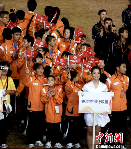 9月19日晚,香港代表团运动员在开幕上。当晚,中国第五届特殊奥林匹克运动会在福州开幕。中新社发 王东明 摄
