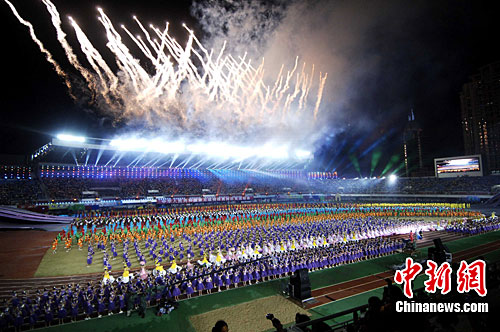 “共享阳光 你我同行”,第五届全国特奥运动会于9月19日晚8时在福州市省体育中心隆重开幕,本届运动会项目为历届最多,规模为历届最大。第五届特奥会组委会名誉主席、中共中央政治局委员、国务院副总理回良玉出席并宣布特奥会开幕。第五届特奥会组委会名誉主席、全国政协副主席邓朴方,第五届特奥会组委会顾问、国家体育总局局长刘鹏、中共福建省委书记孙春兰、中国残联主席张海迪,第五届特奥会组委会主席、福建省省长黄小晶,以及省政协主席梁绮萍等领导出席开幕式。