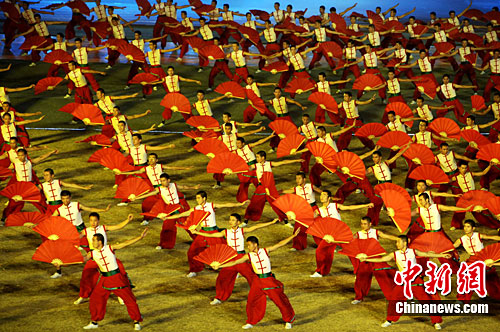 “共享阳光 你我同行”,第五届全国特奥运动会于9月19日晚8时在福州市省体育中心隆重开幕,本届运动会项目为历届最多,规模为历届最大。图为开幕式表演。王东明 摄