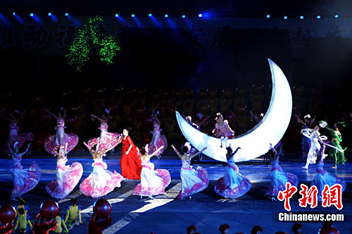 “共享阳光 你我同行”,第五届全国特奥运动会于9月19日晚8时在福州市省体育中心隆重开幕,本届运动会项目为历届最多,规模为历届最大。图为开幕式表演。王东明 摄