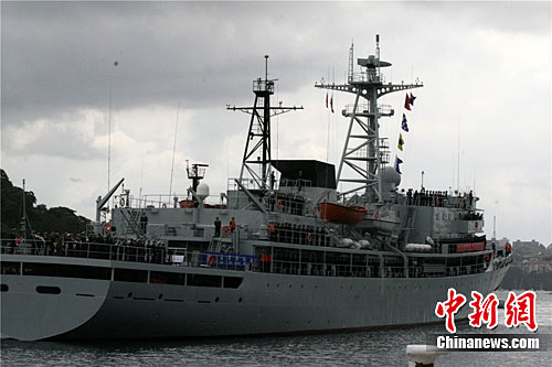 当地时间9月20日上午,在美丽的悉尼军港码头,由“郑和”号远洋训练舰和“绵阳”号护卫舰组成的中国海军训练舰编队,受到了澳大利亚海军和华人华侨的热烈欢迎。中新社记者 朱大强 摄
