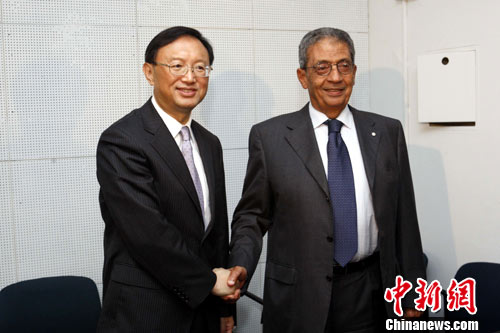 中国外长杨洁篪20日在联合国总部会见了阿盟秘书长穆萨。中新社记者 孙宇挺 摄