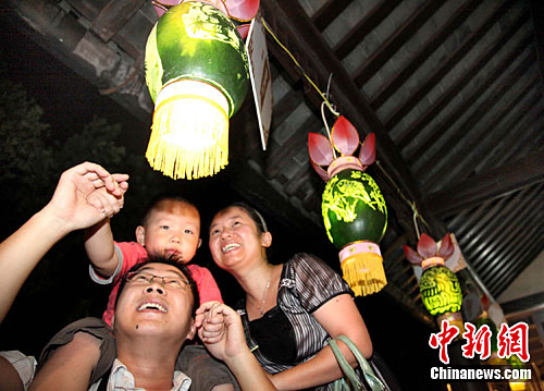 9月18日至22日,“2010·中国平湖西瓜灯文化节”在浙江省平湖市举行。来自于该市的100多名刻瓜人中,有的是美术教师,有的是学生,有的是纯粹的爱好者,其中年龄最大的已80多岁,最小的才10岁。他们精心雕刻的每一盏独一无二的艺术品,吸引各地慕名而来的游客。