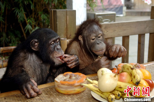 9月21日,中秋临近,广州香江野生动物世界的动物们也提前品尝各式各样的“月饼”让它们品尝,与游客一起欢度中秋。中新社发 刘卫勇 摄