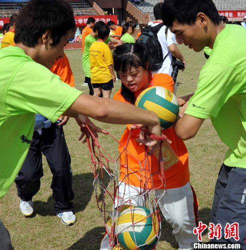 9月21日,中国第五届特殊奥林匹克运动会非体育项目——特奥大学计划,在中国第一所成立特殊奥林匹克运动研究中心的高校——福建师范大学旗山校区启动。 特奥大学计划活动日现场,由150名高校志愿者与150名特奥会小运动员一起参与的高校啦啦操表演、带球绕杆射门接力、抢运货物与百步穿杨等循环小游戏,以及阳光融合走与拔河等竞技活动,烘托了活动日的主题“有爱无碍,拥抱未来”,场面感人。