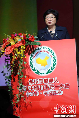 9月21日晚,国务院侨办主任李海峰在“全国华侨华人促进中国和平统一大会”开幕招待晚宴暨联谊演出晚会上致辞。来自中国内地、香港、澳门、台湾以及全球五大洲60多个国家、地区逾1500多位代表出席了规模空前的是次大会,共襄统一大业。中新社发 谭达明 摄