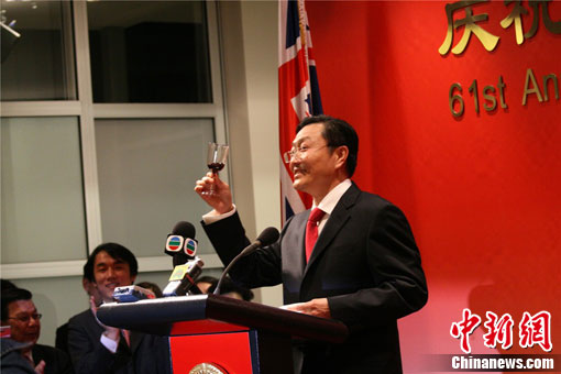 中国驻悉尼总领馆21日晚举行庆祝中华人民共和国成立61周年国庆招待会,悉尼的华侨华人等各界人士数百人出席,大家聚集一堂,共享欢乐喜庆。中国驻悉尼总领事胡山在致辞时表示,向新州全体华侨华人致以节日的祝福和亲切的问候。中新社记者 朱大强 摄