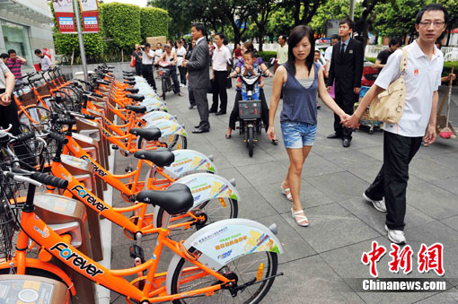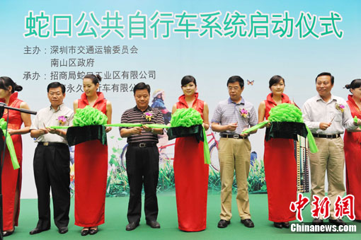 9月22日,深圳“世界无车日”倡导低碳生活,位于蛇口片区的公共自行车系统启动,有350辆自行车在16个网点供市民便利出行。中新社记者 陈文 摄