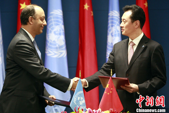 中国政府和联合国开发计划署22日在纽约联合国总部签署关于加强合作的谅解备忘录,中国商务部副部长王超和联合国助理秘书长、开发计划署助理署长齐伯分别作为双方代表签署谅解备忘录。中新社发 孙宇挺 摄