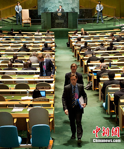 伊朗总统艾哈迈迪-内贾德23日在联大一般性辩论中发表有关“9·11”恐怖袭击事件的言论,在场的美国和欧盟国家代表离开会场表示抗议。