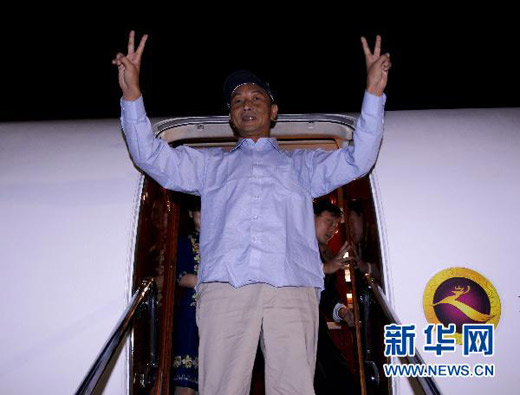 9月25日1时12分,由外交部和农业部组成的联合工作组已接护中国渔船船长詹其雄,乘坐中国政府包机启程回国。陈建力摄