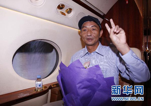 9月25日1时12分,由外交部和农业部组成的联合工作组已接护中国渔船船长詹其雄,乘坐中国政府包机启程回国。 陈建力摄