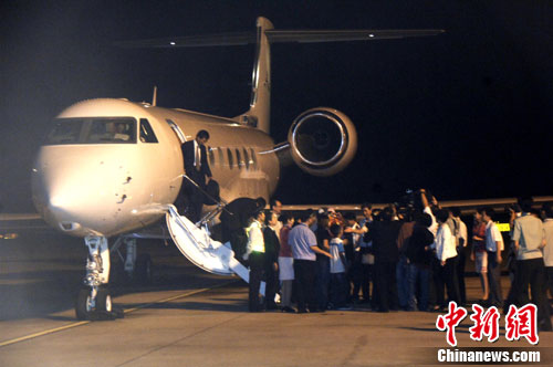 从日本冲绳石垣机场起飞的中国包机,降落在福州长乐国际机场。中新社记者 王东明 摄