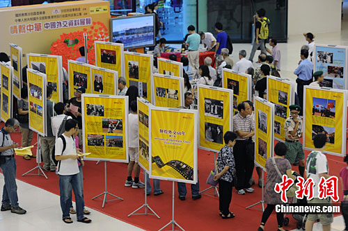 深受青少年欢迎,一直在香港各学校轮流展出的“辉煌外交60年”图片展,9月25日,首次应邀进入香港社区在沙田新城市广场展出。该展以“中国与周边国家外交关系”及“中国民间外交”两大主题展出珍贵历史照片,并在现场播放中国外交的光碟、知识问答等。中新社记者 郑祚声 摄