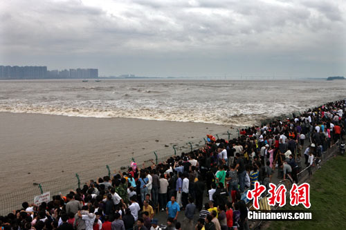 “八月十八潮,壮观天下无”。9月25日是农历八月十八,钱塘江当日出现8年来最大潮涌。在杭州萧山钱塘江畔,8万人如约观看钱江潮。