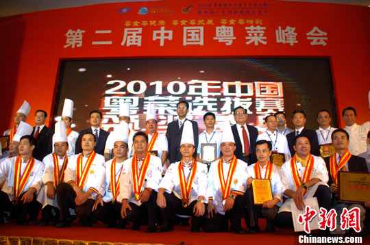 第二届粤菜峰会选拔大赛颁奖晚会,9月25日晚在广州香格里拉大酒店举行,来自全球的广府菜、潮州菜、客家菜、雷州菜等有地区特色的各派菜系代表大师、世界名厨、著名餐饮品牌企业、国际美食评论家、营养学家等300人参加了颁奖晚会。