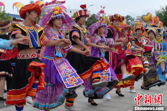 开幕式上,身穿民族盛装的演员们载歌载舞,进行了极具岭南民族特色的文艺表演。
