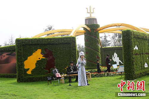 9月26日,河南郑州,位于中国绿博园德内蒙古展区满目翠绿,与绿博会主题巧相呼应。当日,第二届中国绿化博览会在郑州市绿博园内隆重开幕。中新社记者 王中举 摄