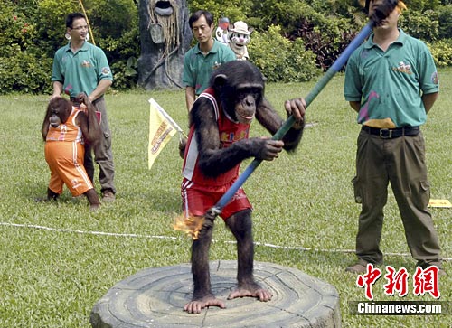 9月27日,广州香江野生动物世界首届亚洲动物运动会开幕,几百动物运动员代表及上千名游客参加了风趣十足的开幕式。大象、金刚鹦鹉、黑猩猩、白虎等参与表演。