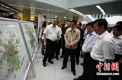 图为四川省委书记刘奇葆正在了解成都地铁的规划建设情况。中新社发 刘忠俊 摄