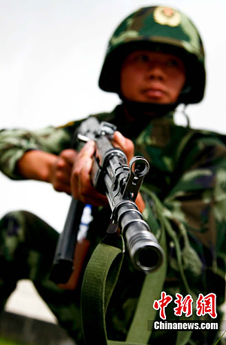 图为9月28日,实战演练中的边防战士。中新社记者 刘冉阳 摄