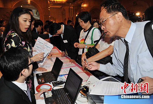 图为股东(右)在进入会场前办理登记手续。中新社发 邓庆乐 摄