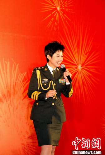 9月28日晚,国务院侨务办公室、中国海外交流协会在北京举行国庆招待晚宴,欢迎专程来北京参加新中国成立61周年庆祝活动的近600位海外侨胞和港澳台同胞。图为董文华在招待晚宴上演唱。中新社发 张勤 摄