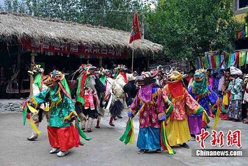 图:甘肃白马藏族同胞山寨民俗歌舞迎国庆(5)