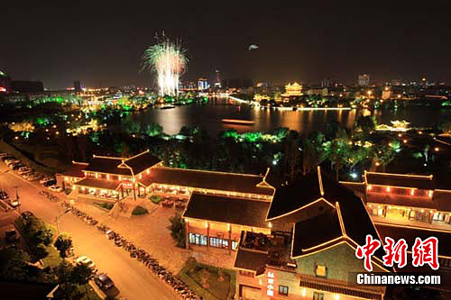 中国传统建筑风水文化博物馆“三水湾”景区夜景。徐义 周胜涛