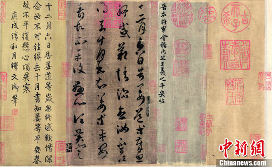 9月29日,从中国嘉德国际拍卖有限公司获悉,在即将于2010年11月中旬举行的中国嘉德2010秋季拍卖会中,书圣王羲之作品《草书平安帖》将作为重磅拍品现身。据介绍:乾隆帝盛誉本贴‘可亚时晴’,媲美‘三希堂’瑰宝王羲之《快雪时晴帖》,民间流传王羲之高古摹本无出其右。中新社发 杨可佳 摄