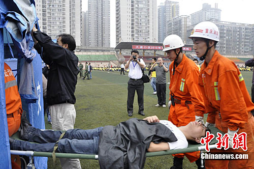 重庆一学校举行地震应急演练(2)
