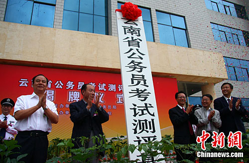 2010年9月29日,中国西南地区第一个公务员考试测评机构——云南省公务员考试测评基地揭牌仪式在云南警官学院举行,国家公务员局考试录用司司长聂生奎和云南省委组织部、省政法委等相关政府官员参加了揭牌仪式。据了解,截止2010年,云南省通过考试共录用了111328名公务员,通过考试有效改善了公务员队伍的知识和年龄结构。考试测评基地将建立一套考试测评全程视音监控、存储及检索系统,以公安院校作为考试测评基地,可以使考试在保密、安全环节上有更大保障。