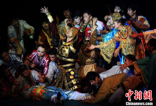 中新网疏勒9月30日电(记者 刘新)9月29日晚,大型音舞诗剧《汉候班超》在新疆喀什疏勒县首演,该剧分为誓师、定边、安邦、思乡、驻留、喜庆6部分组成,反映了公元一世纪汉候班超率领36名勇士,为山河统一、定远边土、促进民族团结作出的丰功伟绩。据《汉候班超》编导介绍,该剧创作排练长达1年时间,演员达到120多人,是一部“胡风汉韵”为基调的大型诗史交响乐。