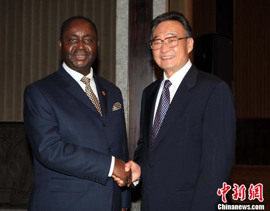 10月1日,全国人大常委会委员长吴邦国在上海西郊宾馆会见中非总统博齐泽。中新社记者 潘索菲 摄